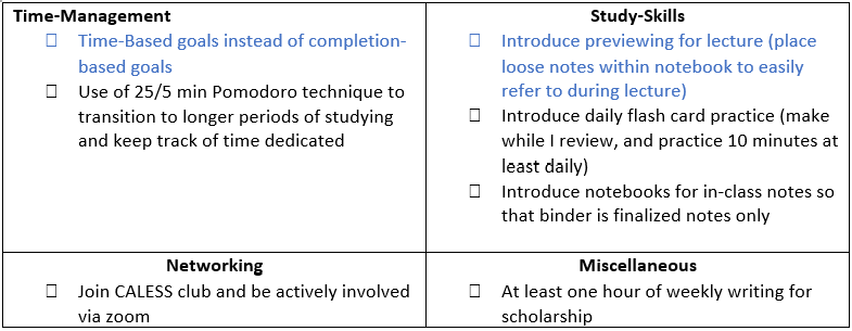 So why have I consecutively failed to keep up with this habit of previewing lecture material. By the way, this blog post is just as much for me as it is for the next person. By identifying some of my pitfalls, hopefully, I can save you the trouble of making these same mistakes. I have narrowed down the issue to two different aspects of scheduling: setting time-based goals instead of completion-based goals and creating a habit through routine. Lastly, I did not have a method for how to preview material.